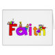 Cute whimsical illustration of a group of little children climbing over the word FAITH. Image available on various gifts and products.