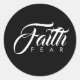 Visual wordplay text design with the first line in a strong beautiful font printed in bold above the second line of small wide-spaced letters. Keep the inspirational saying 'Faith Over Fear' for a gift of encouragement, or use the text template to create a new inspiring quote. Edit to change the white text and black background to any colour you wish. ♡ Idyllfire