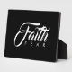 Visual wordplay text design with the first line in a strong beautiful font printed in bold above the second line of small wide-spaced letters. Keep the inspirational saying 'Faith Over Fear' for a gift of encouragement, or use the text template to create a new inspiring quote. Edit to change the white text and black background to any colours you wish. ♡ Idyllfire