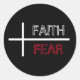 Faith Over Fear Quote. Red, Black & White Text with a Cross. Christian stickers.