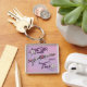 This is a Unique "One of a Kind" Faith Over Fear Keychain! It Features the Inspirational Christian Words "Faith Over Fear" in Purple and a Beautiful Boho Arrow Nestled Among Pretty Pink & Cream Flowers and Purple Feathers...on a Light Purple & Pink Background!