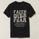 This black t-shirt features the text "FAITH OVER FEAR" stacked at the top in a large, retro-style, off-white font with a subtle shadow. Below, in a smaller off-white font, is the Bible verse "THE LORD IS ON MY SIDE; I WILL NOT FEAR WHAT CAN MAN DO TO ME? PSALMS 118:6". This design expresses a message of courage and trust in God over fear, referencing a specific passage from the Book of Psalms.