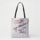 Personalise this Unique "One of a Kind" Christian Tote Bag! It Features Inspirational Christian Quote..."Faith Over Fear"... and a Beautiful Arrow Nestled Among Pretty Pink & Cream Flowers with Purple Feathers on a....Stressed White Wood Background.