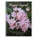 The front of this journal spiral notebook features pink Oleander flowers blooming in a shade garden. Bible Scripture from Matthew 21:22 is at the bottom of the image and the words "Prayer Journal" is also on the image.