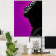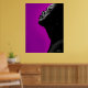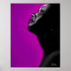 A realistic black and white digital painting of a black woman in profile looking upwards against a purple background. It will look great in your your living room.