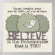 Little Boy is seen in a relaxed pose high in the treetops of the trees illustrating the quote above that reminds us to pause, breathe, pray and let faith put you at ease. The shapes of the trunks of these trees spell out the word, “BELIEVE” and the quote, “in the Unbelievable that is YOU!” below that completes David A. Carrizales’ well-known saying. Drawing is by Christie Black.