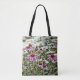 The front of the tote features beautiful coneflowers and daisy wildflowers; the back of the tote has a light floral pattern with Scripture from James 1:4 so either side can be shown.