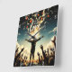 This impactful wall clock vividly illustrates the dynamic power of divine connection, featuring a central figure with outstretched arms, receiving and giving amidst hands reaching from above and below, all intertwined with glowing hearts. The profound scripture, "Faith works through love." – Galatians 5:6, is prominently displayed. With its dramatic, textured artistry and clear numerals, this timepiece serves as a constant reminder of love's activating force in a life of faith.