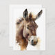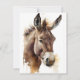 A donkey is portrayed with a realistic yet artistic style, capturing its gentle expression and detailed features. Soft shades of brown and white are blended with splashes of watercolor, giving the image a dynamic and fluid appearance.