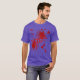 I give wanted to give this a 4 instead of a 5 because these Basic DARK T0shirts run unexpectedly SLIM or Narrow. Which is great if you do not have a potbelly, but I have a paunch. It isn't the shirt's fault that I've got a beer belly. The design and shirt itself is a quality cotton shirt. The color is more of a deep purple, but still a very pretty color. The Basic DARK T-shirts run a bit SLIMMER than the Basic Ts. The neck is a fraction narrower (or seems to be narrower) also. I'm a paunchy middle-aged woman and my neck is 12 inches (31cm) thick and the neckline fell about the same as in the photo of the man, and I had the desire to tug it a bit. So if you're a thick necked man or like loose shirts, be aware these are slimmer shirts. Once I get rid of my lockdown paunch it'll look great. The shirt washed well in cold water with no apparent bleeding. We don't have a dryer, so it hung dry. Did not shrink. Love the colors and the design. The design looks smaller on my shirt than it does on the model on-line. But still, it looks good on the shirt. The printing looks as it does on the model, just the size seems fractionally smaller. Washed garment in cold water, hung dry and design appeared unaffected.