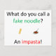 What do you call a fake noodle? An impasta!