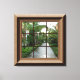 Features a faux wood framed window overlooking a tropical walkway. The frame continues around the sides of the canvas. View additional images for a closer look.