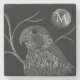 Black and white artwork of a peregrine falcon with full moon and tree branches. Use the text template to add an initial or monogram to the moon. ♡ Idyllfire
