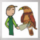 Falconry design shows a keen falconer holding his bird of prey which observes him closely.
