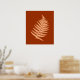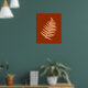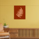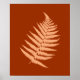 A silhouette drawing of a fern leaf in fall in a light brown colour with a dark reddish brown background.