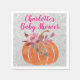 Cute and chic fall autumn baby shower napkin with a large orange floral pumpkin, silver glitter sparkles background, and elegant hot pink writing. You can easily add your name and custom text and change the colour and font using the customise option!
