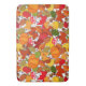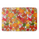 Colourful Fall patterned bath mat, with pumpkins, Autumn leaves, berries and toadstools.