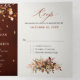 Elegant rustic country fall wedding tri fold Invitation featuring brown, red, orange, green eucalyptus leaves. Please contact me for any help in customisation or if you need any other product with this design.