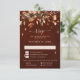 Elegant rustic country fall wedding RSVP card featuring brown, red, orange, green eucalyptus leaves. Please contact me for any help in customisation or if you need any other product with this design.