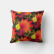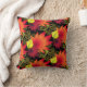 This throw pillow is shown in a autumn fall leaves print with a black background colour.