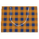 Fall Autumn Orange Blue Plaid Pattern Large Gift Bag