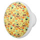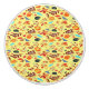 Fall pattern with pumpkins, dry leaves, nuts and mushroom on yellow background.