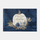 "Fall Autumn Pumpkin Navy Welcome Mat Family Name."  Perfect as a hostess gift for a family that is sharing their home with you for the weekend or as a welcome mat for your invited guests!  Personalised with your family's name and message this navy blue rustic wooden background with a white pumpkin and muted fall foliage in earth tones with dusty and navy blue flowers all painted in watercolor by Internationally licensed artist and designer, Audrey Jeanne Roberts, copyright all rights reserved.