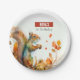 Fall vibes birthday party paper plates featuring a watercolor squirrel. For autumn-born kids. Customise this product by adding your party information.