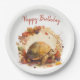 Cute birthday party paper plates featuring a watercolor tortoise. For fall / autumn-born people. Customise this product by adding your party information.