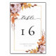 Elegant fall or autumn floral wedding table number card with guest names.