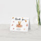 "Thank you". Celebrate with this teddy bear themed baby shower party! Watercolor cute teddy bear with an autumn pumpkin in its paws sits on autumn foliage.