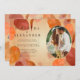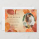 For your Fall Boho Wedding, choose this unique minimalist wedding invitation template featuring sleek, classic lettering and one of your favourite engagement photos in an oval frame, on a delicate, colourful autumn leaves background, with earthy autumnal copper shades from light butter yellow to beautiful terracotta and burnt oranges.