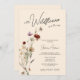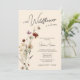 Fall Boho Little Wildflower Baby Shower Invitation with scripted lettering reads, a little wildflower is on the way. And beautiful, whimsical watercolor wild flowers in burgundy, violet and cream hues. Minimal and elegant baby shower invite for fall or autumn baby showers.