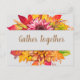 Beautiful watercolor split graphic features autumn flowers and foliage with centre customisable "gather together" text in modern light brown font.