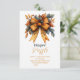 Autumnal Design: Features a lovely fall colour scheme with deep oranges, rich reds, and golden yellows, complemented by soft pink bows. Seasonal elements like leaves and pumpkins add a cosy touch.