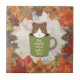 Embodying the cozy charm of fall, “Fall Break Cat tile” features digitally printed artwork that captures the essence of autumn through the presence of an adorable cat and the warm, inviting background of plaid maple leaves. Personalize it with your favorite words and quotes.