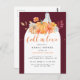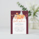 Fall autumn theme bridal shower invitation with pumpkin floral autumn watercolor illustration.