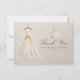 Send your gratitude in style with this elegant flat thank-you card, designed to complement our dusty rose and eucalyptus bridal shower suite. The front features a watercolor bridal gown with soft golden accents and neutral florals, while the back includes a heartfelt message and dried botanical motif. Perfect for fall bridal showers, garden parties, or romantic celebrations.