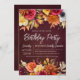 Fall Burgundy Flowers Chic Script 60th Birthday Invitation