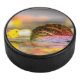 After the rain stopped on this September morning, I decided to visit a pumpkin farm. Outside there were some wooden tables and benches, still wet from the rain. A few shiny leaves were laying on the table. The sun started to show up through the clouds, briefly illuminating the table, allowing for these fall colours to be beautifully rendered.