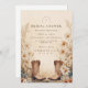 A soft, vintage Western design featuring cowgirl boots, wild daisies, and warm rustic tones. This aesthetic blends country charm with feminine florals, creating a cozy, down-to-earth style perfect for celebrating the bride-to-be. The gentle parchment texture, prairie blooms, and hand-drawn Western elements make this design ideal for anyone planning a warm, countryside-inspired celebration.