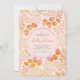 Beautiful woodland oak themed invitation in shades of navy, white and pink. A frame of acorns, leaf and berry silhouettes surrounds the invitation information.