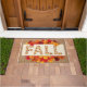 Celebrate your love for the spectacular and dramatic fall season! Colourful leaves, chai tea, apple cider doughnuts, crisp mornings, pumpkins, spice and everything nice - it must be fall y'all! It's easy to get in the autumn vibe with this strikingly beautiful farmhouse-inspired fall doormat. The design features a rustic brown [faux] burlap background with bright orange, yellow, rust, and deep red leaves and a plaque that reads "FALL." The door mat is available in two sizes. Please browse our complete collection of fall-themed greeting cards, home decor, apparel, and unique gift items.