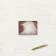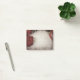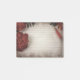 A set of 4x3 sticky notes with an autumn floral themed photograph. Faded lined writing paper and a pen sitting on top with some pretty red flowers and green leaves placed around the edges.