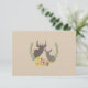 A wedding rsvp featuring an illustration of orange and yellow flowers and greenery arranged around the busts of a buck and a doe. Look for matching wedding invitations and more at Jill's Paperie.