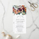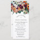 Burgundy red, terracotta orange, blush pink and bright white flowers create the top border on the front and back of this elegant fall wedding program. Welcome and the two categories on the back (ceremony and wedding party) are written in a modern and trendy font. The open and airy design is enhanced by the soft grey text. This wedding program coordinates with the Autumn Celebration wedding collection.