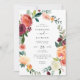 An elegant autumn wedding invitation featuring fall watercolor flowers and modern typography. The rustic floral frame includes roses and mums in pretty shades of cranberry red, maroon, peach, plum, and blush pink. Personalise with your wedding details for a modern, rustic wedding invitation. Part of our "Autumn Elegance" wedding collection.