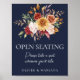 Fall Floral Navy Blue Wedding Open Seating Sign