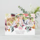 This photo collage thank you has a fall theme and is perfect for autumn weddings. The wedding thank you card features a lovely watercolor floral bouquet and three of your favourite wedding photos. The back of the card is editable -- a burgundy background colour is shown but can be changed to the colour of your choice, or additional photos can be added.