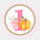 Fall Floral Pumpkin Baby Girl's 1st Birthday ONE Classic Round Sticker